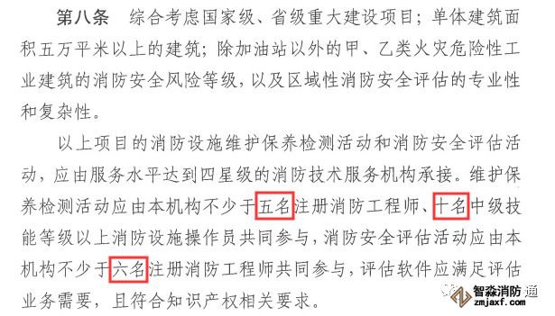 第八條 本規定單獨對四星級機構做了明確規定,對于注冊消防工程師和中級技能人員要求遠超過應急管理部印發的從業條件(2名注冊消防工程師),然而四星級所對應的建設項目是最賺錢的,也是各個機構最想要承接的業務,不是四星級沒有精鋼鉆,攬不到瓷器活!這條,對于注冊消防工程師和中級技能人員就給了最大的利好!