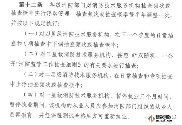 第十四條 這條規定你想到什么?我們大家都熟悉的車輛駕駛證積分規則!每個周期結束還可以重新記分,這個也是大膽的借鑒和放權,消防技術服務機構有問題不會把你一棍子打進深淵,允許你犯錯,但是有底線,本條規定個人認為還需要配套的扣分處罰支持,相信會有的。