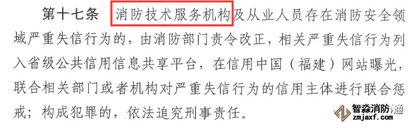第十七條 消防從業人員違法成本加大,把人的違法問題解決了,很大程度上就解決了消防服務的問題。