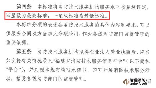 第四條 本條規定是整個規定最大的亮點和創新,為何采用星級標準?為了解決目前消防管理最大的難題:一管就死,不管就亂!通過星級和后面要解讀的扣分制度,給了管理部門和從業機構靈活管理的余地。