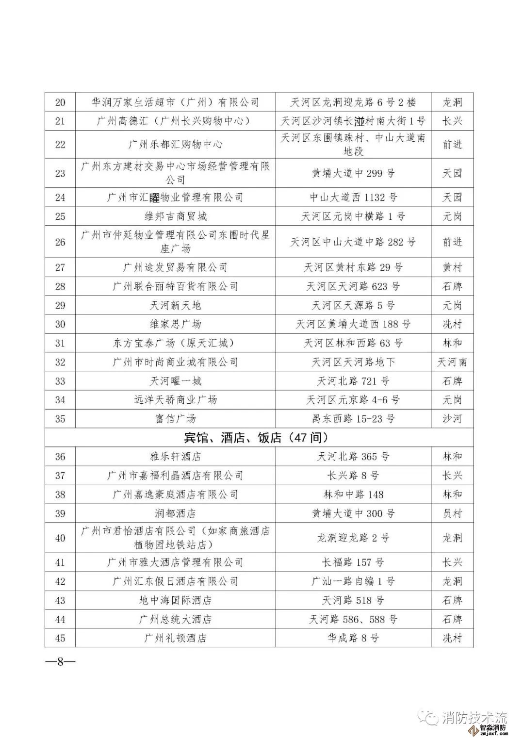 附件:1.天河區2020年度市管消防安全重點單位名冊