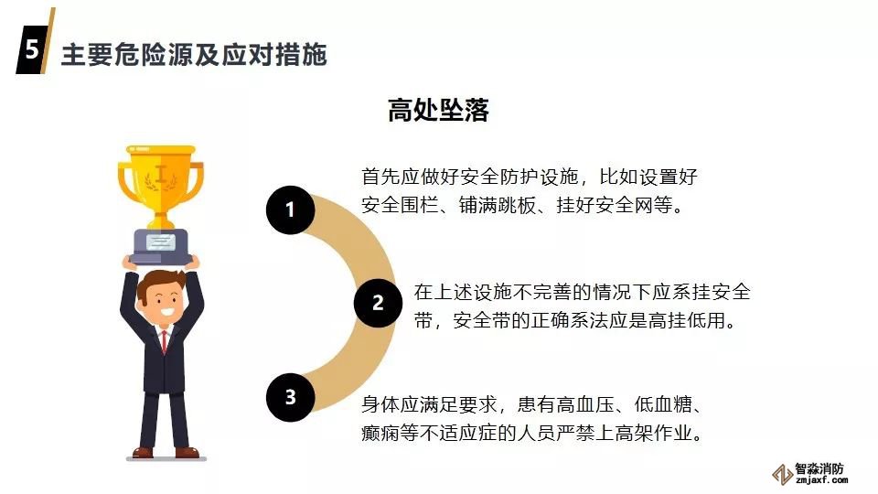 提醒:作業開始前,工人要檢查作業環境是否安全,在輕型屋頂和不牢固的搭建物上作業時,必須采取可靠的防護措施。在石棉瓦、玻璃纖維瓦等輕型屋面上作業時,必須搭設墊板供施工作業使用或行走,墊板下方還應搭設安全網。