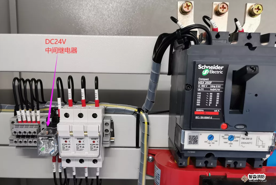 聯動觸發信號(自動啟動,總線) 和手動控制信號(手動啟、停,專線),兩種信號均為DC24V有源觸點,消防信號中間繼電器設于消防水泵控制箱內,滿足GB50116-2013第4.1.1條,4.1.3條。