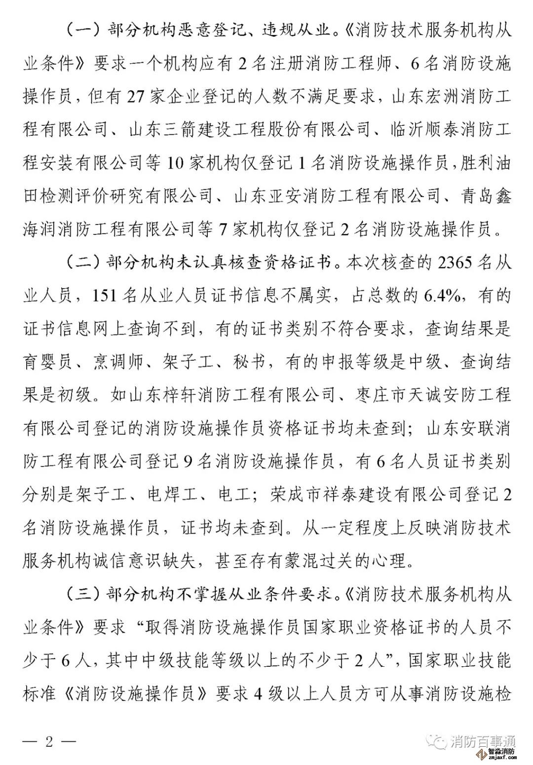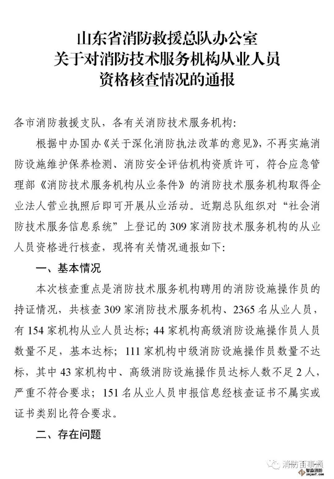 山東:消防技術服務機構從業人員資格核查情況通報