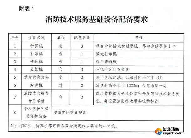消防技術(shù)服務(wù)基礎(chǔ)設(shè)備配備要求