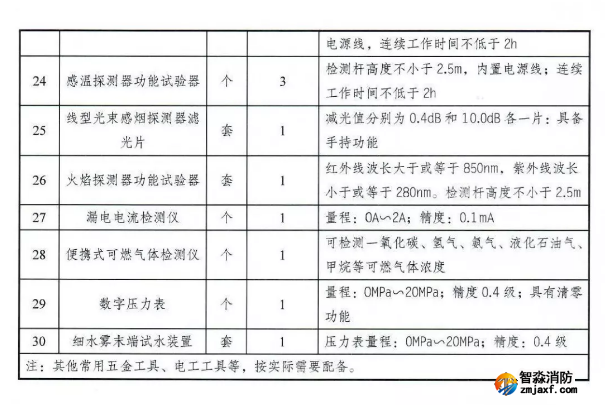 消防設(shè)施維護(hù)保養(yǎng)檢測(cè)設(shè)備配備要求