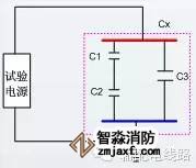 《電氣裝置安裝工程電氣設(shè)備交接試驗(yàn)標(biāo)準(zhǔn)》(GB 50150-2006 )要求新竣工的電纜需要進(jìn)行耐壓試驗(yàn),高壓電纜交流耐壓等效電路如下圖,用C1、C2、C3組合模擬被試電纜的各個(gè)絕緣部件,在試驗(yàn)過程中C1、C2、C3同時(shí)承受高電壓的考驗(yàn)。