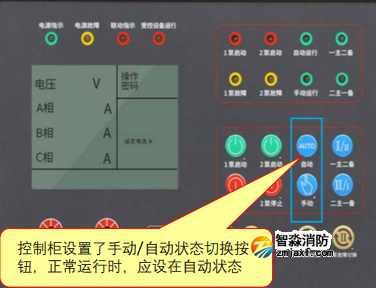 1.消防水泵控制柜在平時應使消防水泵處于自動啟泵狀態(tài)【圖示6】;