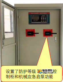 11.0.9消防水泵控制柜設置在專用消防水泵控制室時,其防護等級不應低于IP30;與消防水泵設置在同一空間時,其防護等級不應低于IP55。【圖示8】